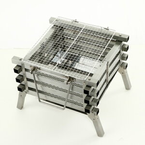 焚き火を楽しむのに最適なデザイン料理もできるマルチユース焚き火台・空気の流れを作りやすく、燃焼効率の高い井げた式ボディ・コンパクトに収束でき、持ち運びや収納に便利・収納ケース付き ■サイズ:約41.5×46.5×34.5(h)cm(使用時)約41.5×30.5×15.5(h)cm(収縮時) ■重量:約5.7kg ■材質:ステンレススチール、他 ■付属品:焼網、収納ケース 検索キーワード:アウトドア キャンプ レジャー アウトドアグッズ キャンプ用品 バーベキューコンロ バーべキュー用品 バーベキューグリル BBQグリル BBQ バーベキュー 焚き火