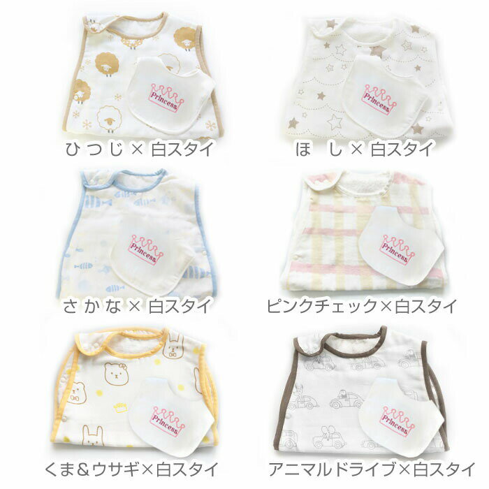 【スリーパー 素材】 生地:綿100% バイアス:綿100% スナップ:ポリエステル 【スタイ サイズ】 ■首周り:約31cm ■スタイ部分縦:約15cm ■スタイ部分横:約20cm 【スタイ 素材】 生地:綿100% バイアス:ポリエステル65% 綿35% スナップ:ポリエステル 吸水速乾性に優れ、肌触りの良い無撚糸のパイルガーゼを使用したスタイです。