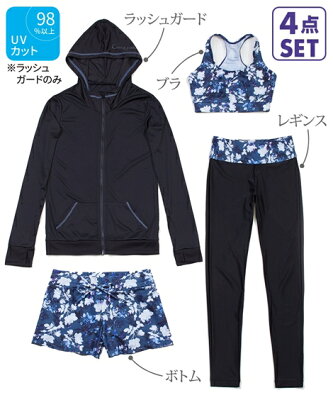 スポーツウェア 上下セット レディース citta room 水陸両用 ラッシュガード & レギンス 付4点セット オフホワイト/ブラック 4L/5L/6L/8L/10L ニッセン